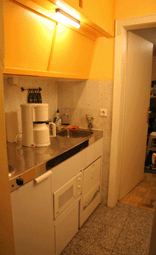 - Kochnische mit Kühlschrank und Mikrowelle