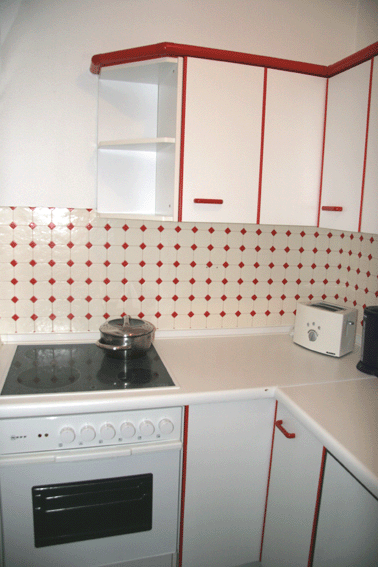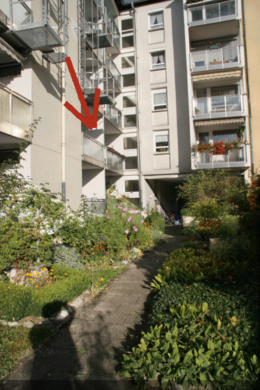 Das komplett möbilierte Appartment befindet sich im 1. OG zur Rückseite eines mit ruhigen Mietern bewohnten Hauses.